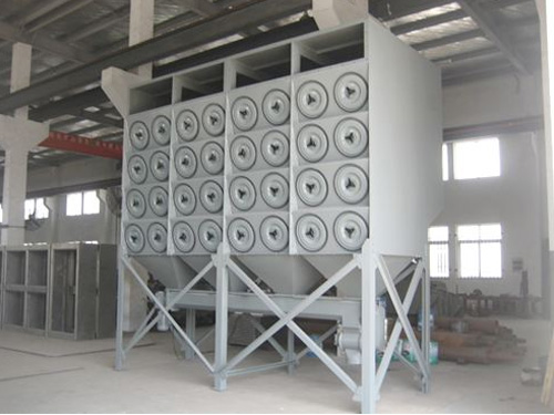 濾筒式除塵器工作原含塵氣體進(jìn)入除塵器灰斗后,由于氣流斷面突然擴(kuò)大及氣流分布板作用,氣流中一部分粗大顆粒在動(dòng)和慣性力作用下沉降在灰斗;粒度細(xì)、密度小的塵粒進(jìn)入濾塵室后,通過布朗擴(kuò)散和篩濾等組合效應(yīng),使粉塵沉積在濾料表面上,凈化后的氣體進(jìn)入凈氣室由排氣管經(jīng)風(fēng)機(jī)排出。濾筒式除塵器的阻力隨濾料表面粉塵層厚度的增加而變大。