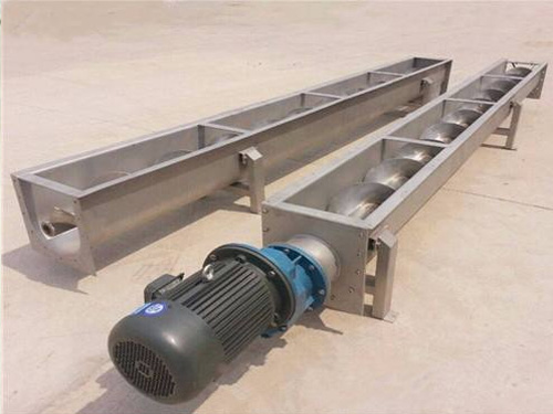 一般情況下,出廠總裝時(shí)將螺旋輸送機(jī)中間節(jié)按長度長短依次排列,長的中間節(jié)靠近頭節(jié),相同長度的中間節(jié)則挨在一起,如果有特殊要求,則在訂貨時(shí)給出排列順序。在螺旋輸送機(jī)頭節(jié)內(nèi)裝有支推軸承承受軸向力,在中間節(jié)和尾節(jié)內(nèi)裝有用軸承支承螺旋軸,此外,在螺旋輸送機(jī)尾節(jié)內(nèi)還裝有可軸向移動的徑向軸承以補(bǔ)償螺旋軸長度的誤差和適應(yīng)溫度的變化。螺旋輸送機(jī)螺旋面的形式有實(shí)體螺旋(S制法)和帶式螺旋(D制法)兩種。各螺旋軸之間采用法蘭式聯(lián)接, 保證了聯(lián)接軸的互換性,便于維修。螺旋輸送機(jī)機(jī)蓋為瓦片式并用蓋扣夾緊在機(jī)殼上,若需改進(jìn)密封性能,用戶可自行在機(jī)蓋與機(jī)殼間加防水粗帆布。 螺旋輸送機(jī)進(jìn)、出料裝置有進(jìn)料口,方型出料口,手推式出料口,齒條式出料口四種,由用戶在使用現(xiàn)場在機(jī)體上開口焊接。